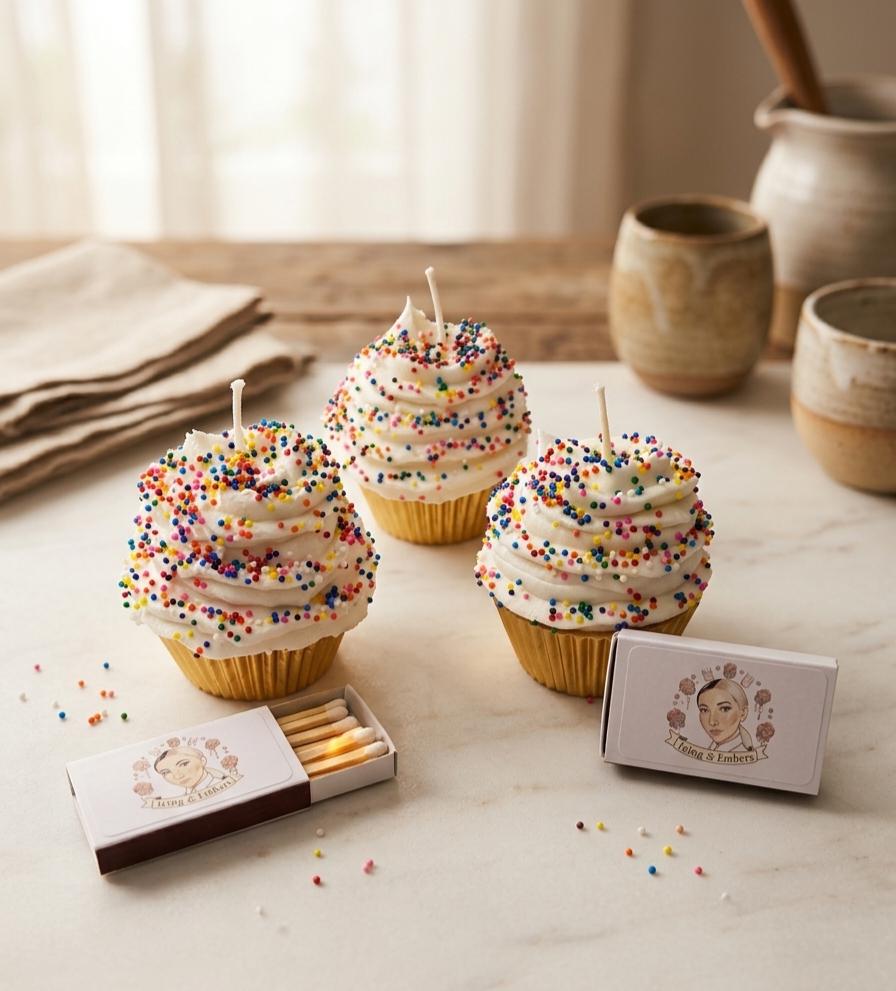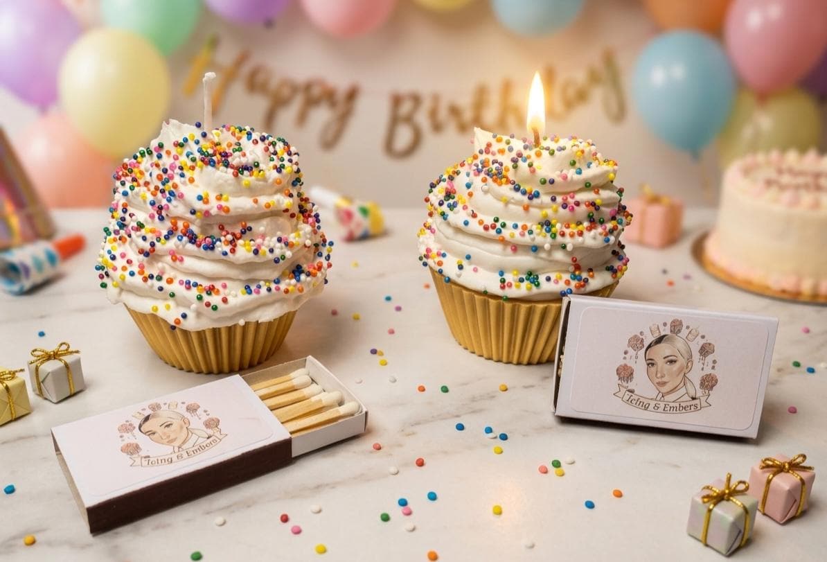 This Classic Vanilla Cupcake Candle is the ultimate celebration piece, handcrafted with the signature hyper-realistic detail that defines Icing & Embers.